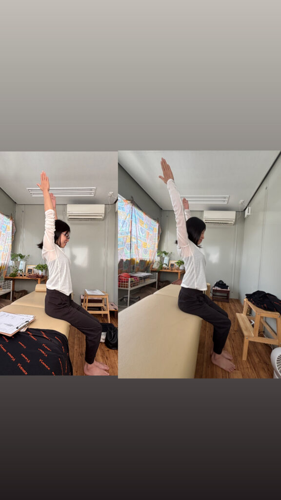 一見、尾てい骨の痛みと関係ないように思えるかもしれませんが、呼吸は横隔膜と骨盤底筋が連動して働くこともあり、尾てい骨の痛みとも関連している可能性があると考えます。また、呼吸が浅いと、体幹の安定性にも影響を及ぼし、骨盤周りの筋肉に余計な負担がかかることもあります。