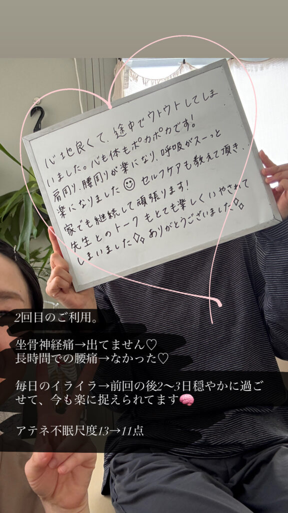 その場しのぎで「なんとなく楽になった」と感じて終わる施術ではありません。